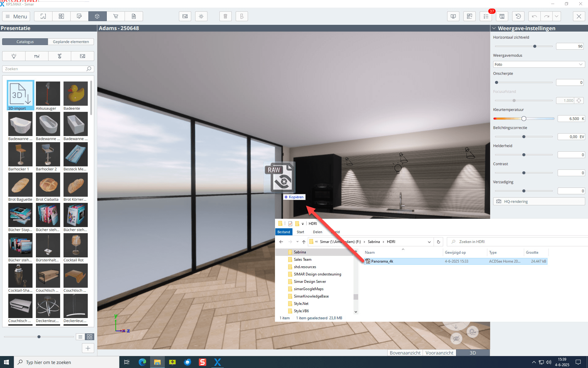 - Ga naar de context presentatie en sleep het HDRI-bestand naar het 3D-gedeelte van het scherm.