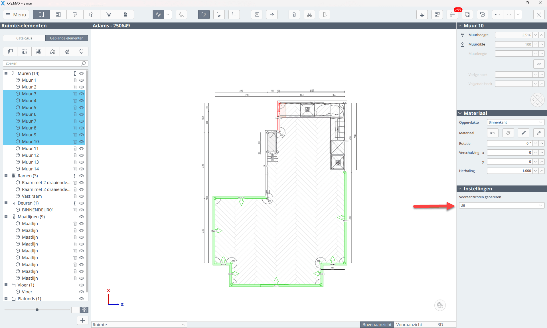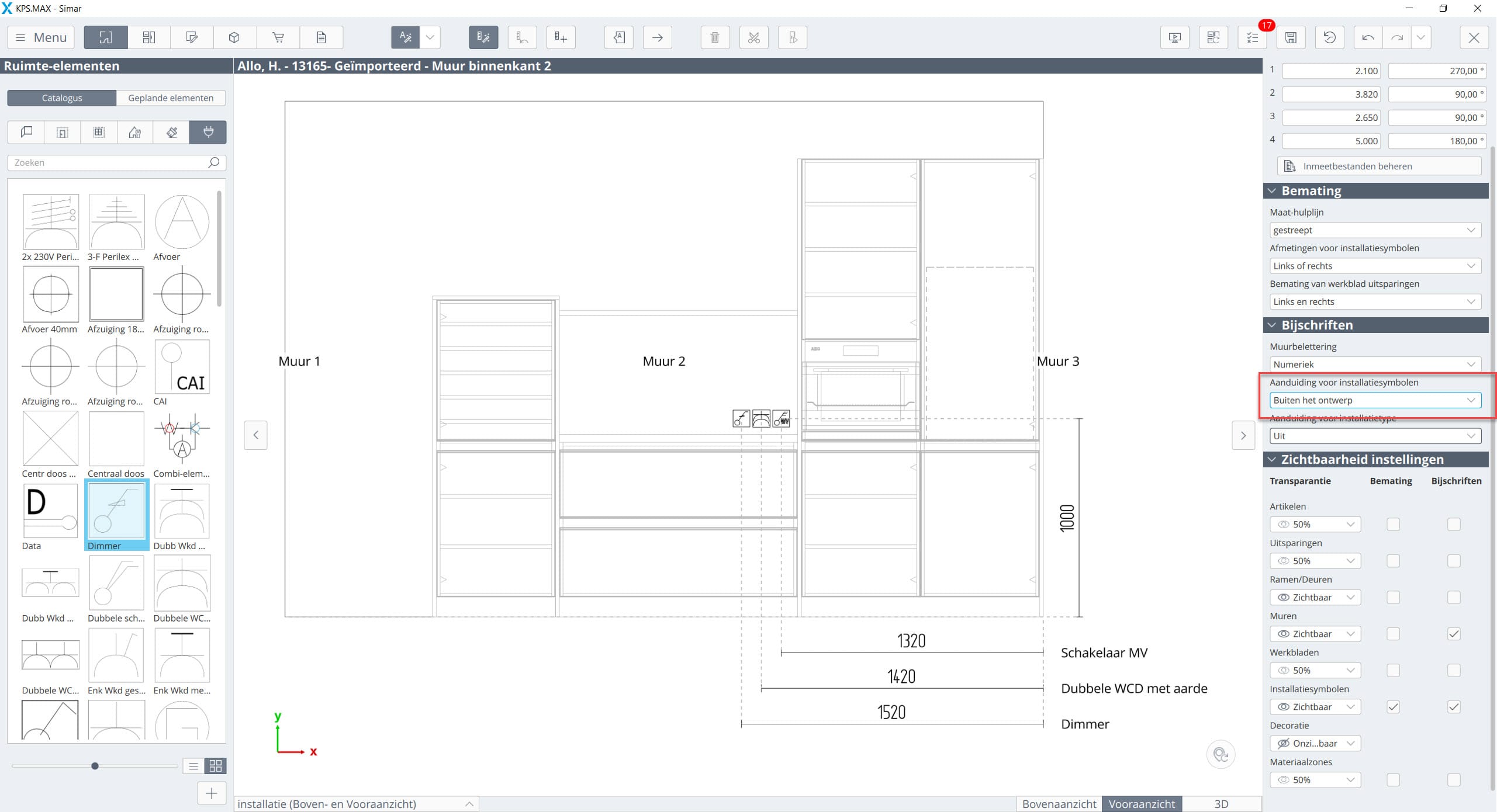 U kunt dit oplossen door in KPS.MAX de kast op te zoeken via ‘Geplande elementen’ links in de selector. Daar selecteert u de losse onderdelen, vervolgens vinkt u rechts in de inspector de ‘Eigenschap’ ‘Alleen grafisch’ aan.